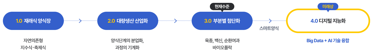 4세대 스마트양식을 위해 빅데이터, 인공지능, 디지털 지능화를 실현합니다.